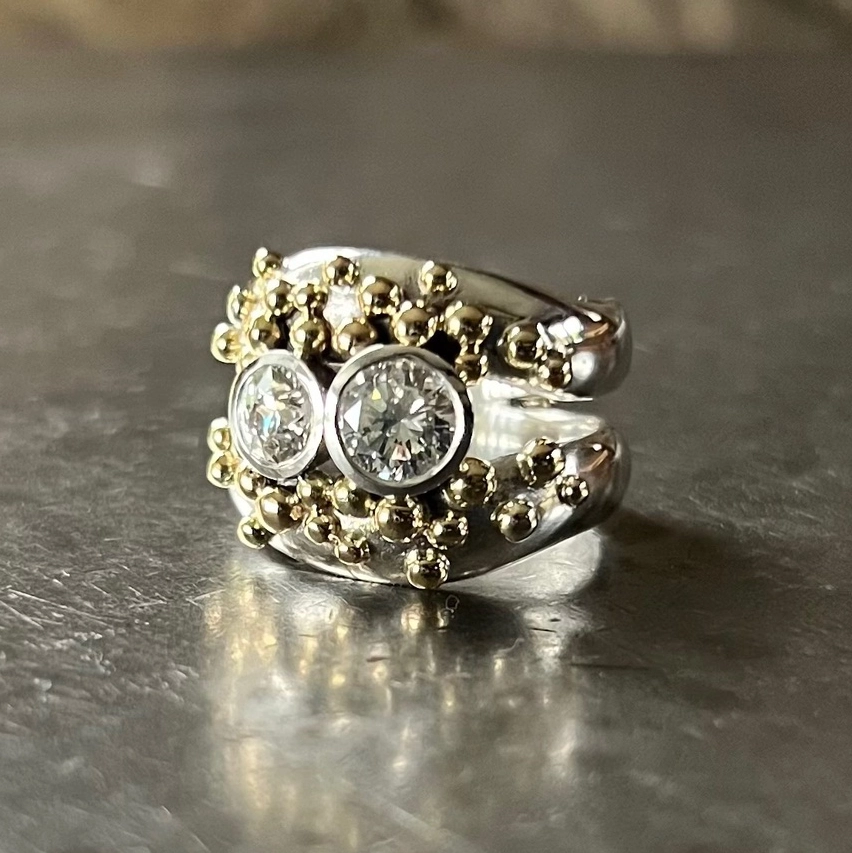 “When designing and making my work I am mindful that I would wish for it to be worn or used to enhance day to day life, whether that life is ‘on show’ or not. Hoping, too, that the beauty and weight of the precious materials will be evident and as important as the hand-making process that produces a certain tactility that once felt is never forgotten. In time, life itself will make its marks and continue ‘the story’ long after the piece has left my workshop!”