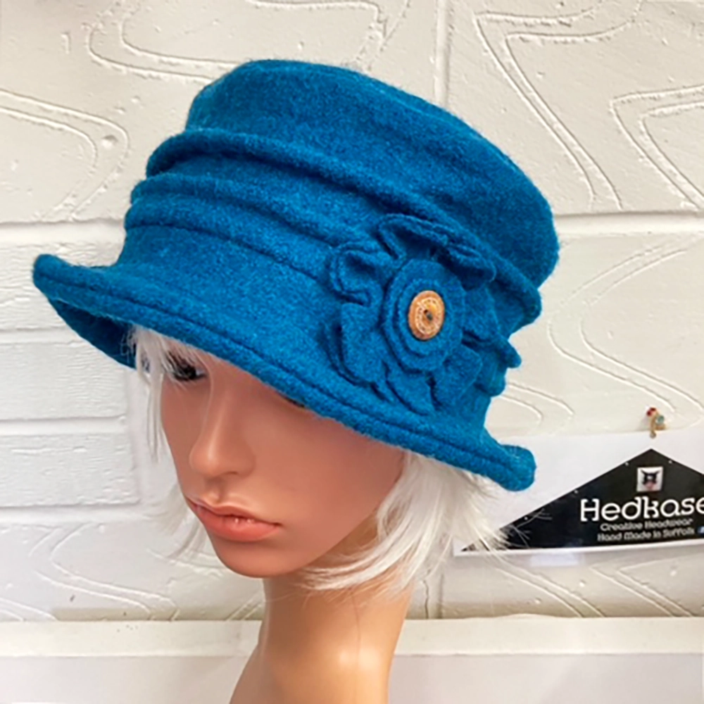 Her winter collections feature cosy polar fleece and, more recently, the richness of boiled wool. From ski hats to Mad Hatter–inspired creations, Nordic styles to town-and-country classics, Sally loves designing “any type of hat” that sparks joy and personality.