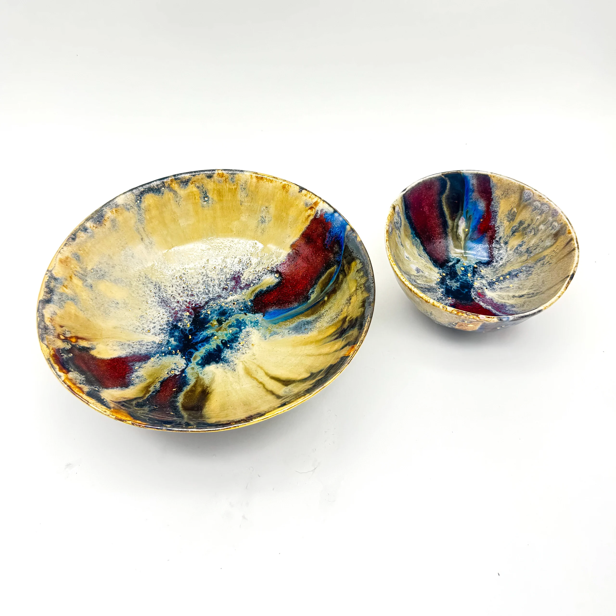 Her ceramics embody an elemental and alchemical quality. Formed by hand or wheel thrown, they are richly layered with reactive glazes. Every piece is unique with no two ever alike. Often finished with gold, the ceramics possess a quiet alchemy, carrying both texture and depth that invite tactile exploration.