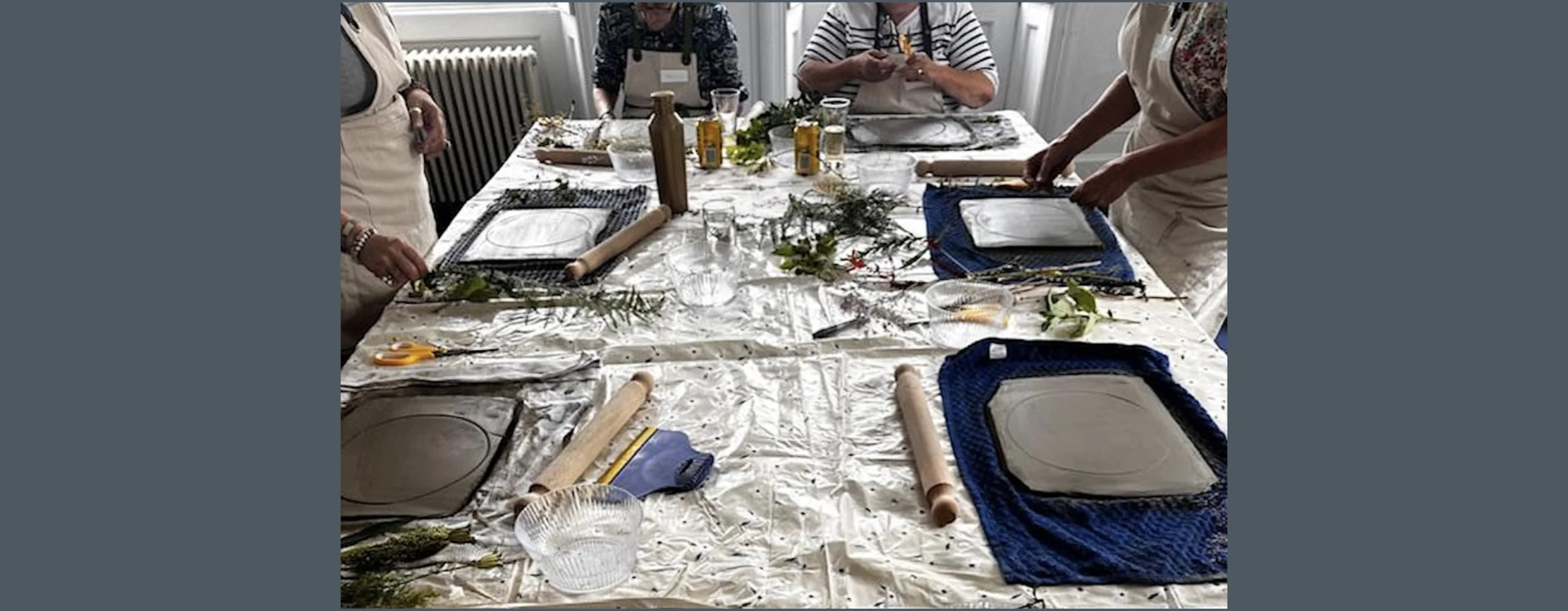- All materials including plants, clay and plaster