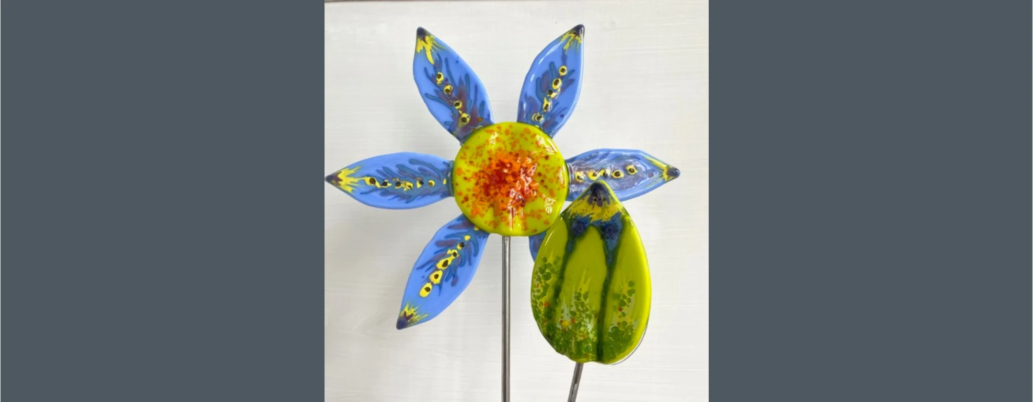 Come and learn the core skills of glass fusing with Danielle Hopkinson, a glass artist with over 30 years’ experience, while making two or three large beautiful glass flowers on steel rods which can be used in your garden.