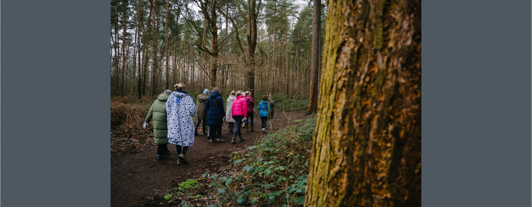 As you wander through the meandering paths of the woodlands with a hot drink in hand, there will be moments of mindful practices where you will soak up the sounds and sights of nature allowing it to calm the mind, talking about how simple walks amongst nature helps you relax and reconnect with yourself.