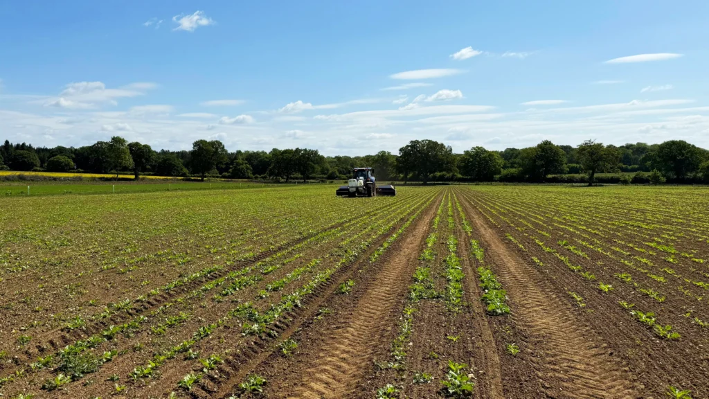 Using the onboard cameras, this machine can spot the difference between the individual Sugar Beet plants and weeds, allowing for only the weeds to be sprayed with very high precision.